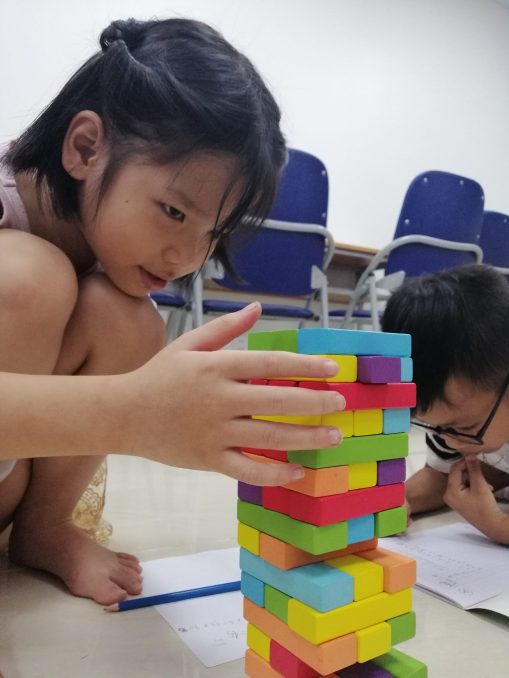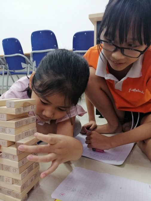 Viimeisenä porhallan TA:n (teacher assistant) mopokyydillä takaisin koululle, entisestään revenneen pallopussini matkustaessa kuskin jalkojen välissä. Viimeinen tunti on klo 19-20.30 ja oppilaat ovat 5-9-vuotiaita, melkoinen paketti siis. Kirjautuneita oppilaita tällä tunnilla on 11 ja lisäksi neljä lasta tuli kokeilemaan kurssia. Pelasimme ensimmäistä kertaa matematiikan opetuspeliä, joka meillä on testauksessa, ja kaaos oli karmea. 15 pikkulasta tungettuna pieneen tilaan (omassa luokassani olen työntänyt pöydät luokan laidoille saadakseni keskelle leikkitilaa), koneita seitsemän kappaletta. Jokaisella joku ongelma, tekninen tai ymmärryksellinen, ja juoksemme hiki hatussa lapsen luota toiselle. Tietsikkahommien jälkeen läväytän isommille kertolaskunoppapelin, vähän pienemmille yhteenlaskunoppapelin ja kaikista pienimmille huojuva torni -pelin. Viisivuotiaista osa istuu tekemässä pelinsä palikoista torneja. Tehkööt.