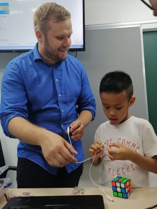 Täällä jokainen kynnelle kykenevä ostaa lapselleen lisäopetusta ainakin matemaattisissa aineissa ja englannin kielessä. Meidänkin koulumme on vielä ainakin toistaiseksi lisäopetuskoulu, kielikouluja täällä onkin jokaisessa kadunkulmassa. Monet koulut haluavat tehdä kanssamme yhteistyötä, ja tämäkin koulu jossa kävin opettamassa, on itse asiassa lisäopetuskoulu. Luokat ovat pieniä ja ne on täytetty kahden istuttavilla pöytä-tuoli-comboilla, joten luokissa on hyvin vähän liikkumavaraa. Koulun omistaja tuijotti minua ällistyneenä juostessani ympäri koulua kerroksesta toiseen ensimmäisenä päivänäni etsimässä tilaa liikkua, ja kun en sitä muualta kuin aulasta löytänyt, raahasin epäuskoiset oppilaat sinne leikkimään.