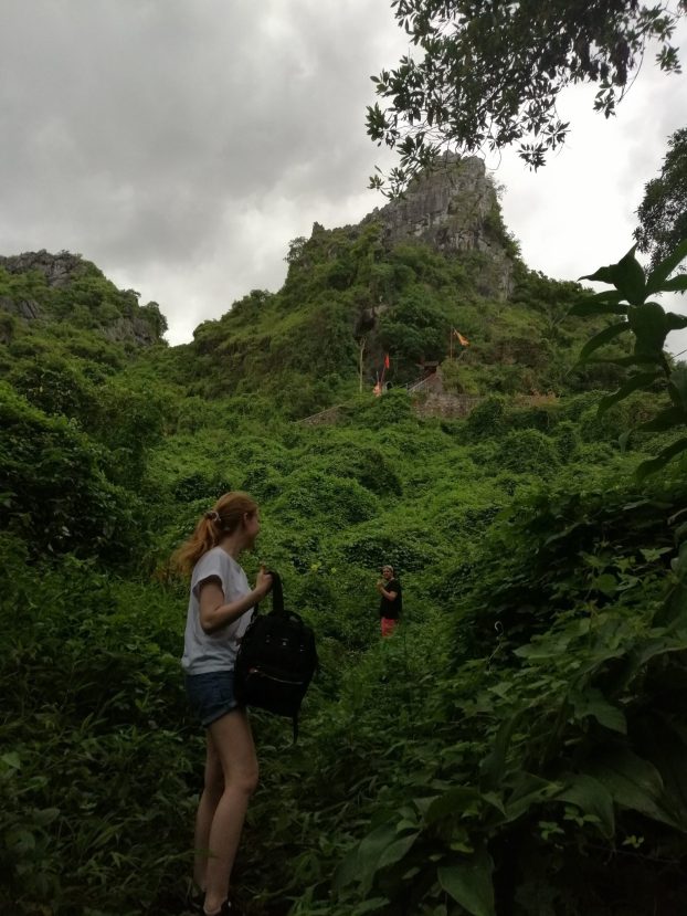 Lähdimme kämppisteni Even ja Villen kanssa ennalta sovitulle patikoinnille kaupungin laidalla sijaitsevalle Elephant Mountainille, joka on paitsi kaunis, myös historiallisesti merkityksellinen paikka Hai Phongille. Norsun muotoinen vuorijono on saanut toimia sekä armeijoiden tukikohtana että palatsien ja temppeleiden rakennusmaastona halki dynastioiden. Lisää vuorten historiasta voit lukea englanniksi tästä. Päiväksi luvattiin sadekuuroja, mutta meillä on harvoin yhteisiä vapaahetkiä, joten uhmasimme kohtaloa.