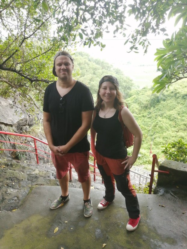 Kipuaminen ylös vuorenrinnettä oli yllättävän kovaa hommaa. Kiipesimme pitkin kivisiä, laakeita portaita, ja olin nopeasti hiestä märkä. Emme olleet ehtineet kovinkaan korkealle kun alkoi sataa suuria, raskaita pisaroita. Viisitoista kiloa laihduttanut Ville lähti laukkaamaan kohti luolaa, jonka tiesi odottavan vuoren kyljessä, me Even kanssa seurasimme huomattavasti hitaammin, mutta pääsimme perille.