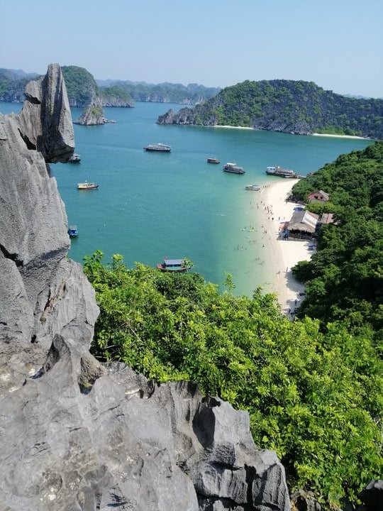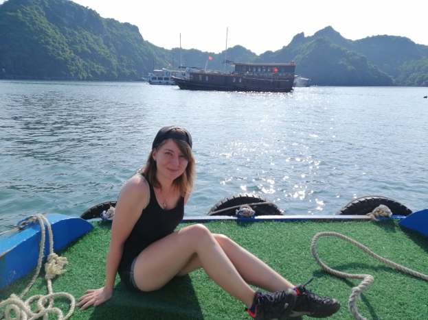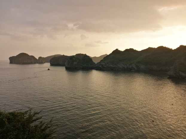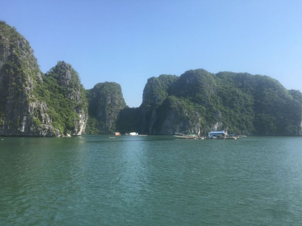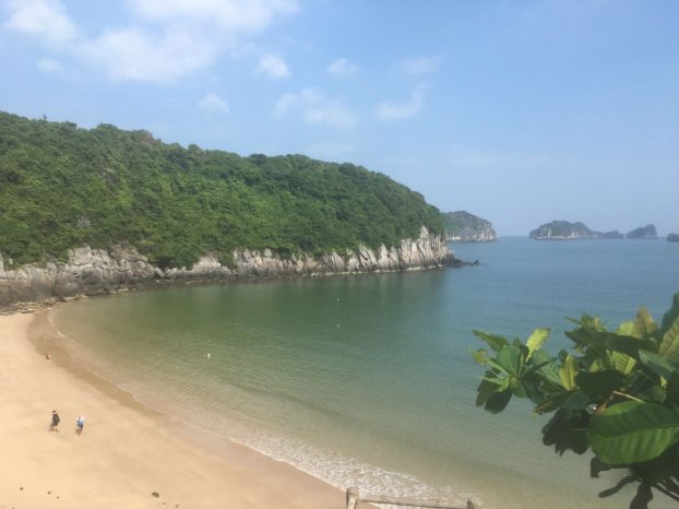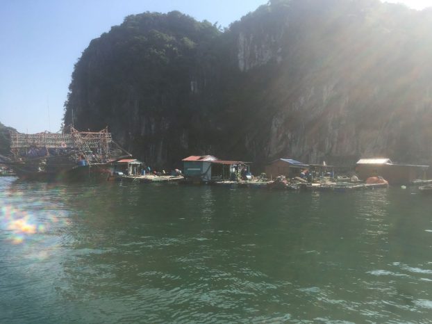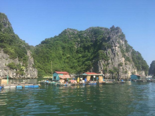 Tuo matka olikin meille kahdelle juuri sopiva. Vene puksutteli kaikessa rauhassa läpi sataman, kalankasvatusaltaiden ja asuinlauttojen, koukkasi kauniille Lan Ha Bay’lle ja suuntasi kohti Apinasaarta, Monkey Islandia. Lan Ha Bay on muuten tunnetumpaa sisartaan Ha Long Bay’ta vähemmän ylikansoitettu turisteilla ja turistilaivoilla ja maisemat ovat yhtä upeita. Suositus sille.