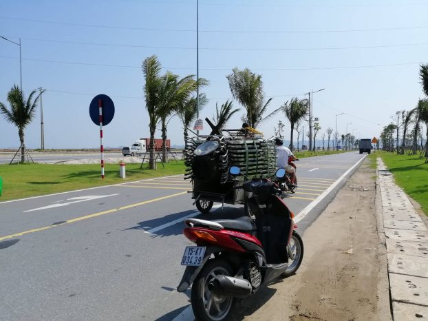 Tällainen mahtava paikka on Cat Ba, saari aivan lähellä Hai Phongia. Olen vasta neljä kuukautta puhunut sinne menemisestä, olikohan jo aikakin. Hai Phongista pääsisi saarelle suoraan lautalla, mutta koska saarella ehdottomasti ykkösväline liikkumiseen on skootteri, päätimme ajaa Sissin (skootterini) suoraan kohteeseen. Työkaverini olivat huolesta sekaisin, ”tiellä on isoja rekkoja” ja ”matka on niin pitkä”. Niin, noin 30 km. Siinä kovimmille joutuu pyrstö, Sissin penkki ei nimittäin ole mikään nojatuoli. Uhmasin kuitenkin kuolemaa ja karautimme autolautalle koko pitkän matkan ihan itse ajellen, ja kas, helppoahan se oli kuin heinänteko. Takapenkiltä tuli hyvät ohjeet karttaohjelmaa seuraten ja kuskille jäi tehtäväksi vain pysyä tien laidassa ja veivata kaasua.