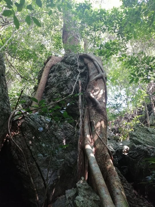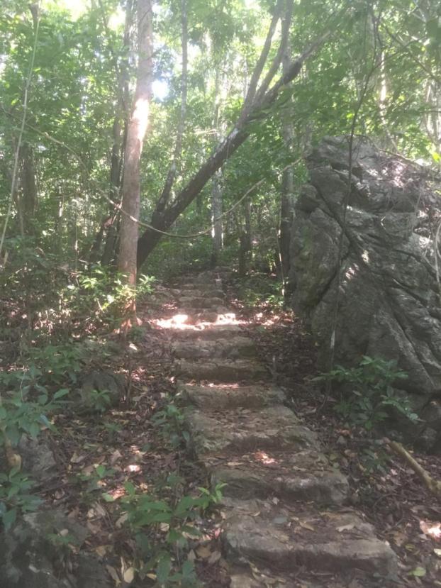 Monkey Islandilla on valkoista hiekkaa, kirkas, säihkyvä merivesi ja rantabaari. Ja mitä me pöhköt teemme? Lähdemme tietysti kiipeämään vuorelle. Vuorelle johtavaa reittiä yritti moni kivuta rantaläpsyköillä, mutta joutui palaamaan leuka rinnassa. Reitti ei ole pitkä, mutta se on jyrkkä, ja teräviä kiviä pitkin kiivetessä on oltava todella varovainen, kyse on ihan kalliokiipeilystä. Ylhäältä avautuvat maisemat kaiken yllä kaartelevine haukkoineen ovat kuitenkin sen arvoiset. Ja kiipeämisen jälkeen voi juosta suoraan välkehtivään mereen, ihanaa!