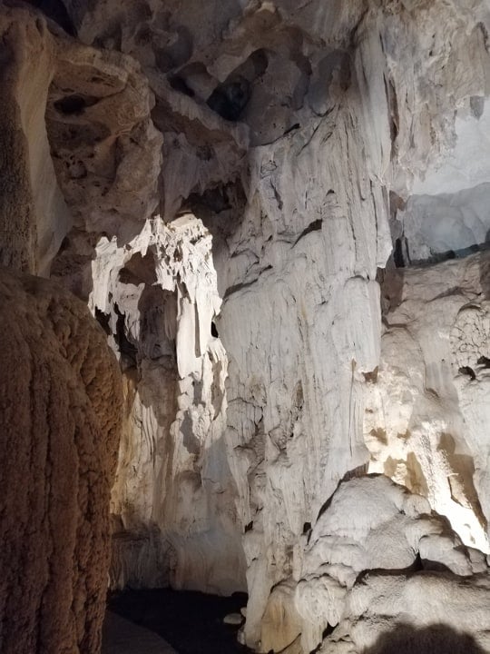 Aivat lähellä Cat Ba’n luonnonpuiston rajaa on tippukiviluola, joka oli hienoimpia koskaan näkemiäni. Luolassa saa enimmäkseen kävellä suurissa tiloissa selkä suorana, välillä on käveltävä aivan kyykyssä. Hyvin valaistu luola ei kuitenkaan tuntunut ahdistavalta ja se tuntui jatkuvan loputtomiin. Yhteen pimeään koloon kurkistaessamme näimme jopa uinuvan lepakon, mutta lähdin kiireesti pois otuksen liikahtaessa, yksi rabiestartuntamahdollisuus per reissu riittää ihan varmasti.