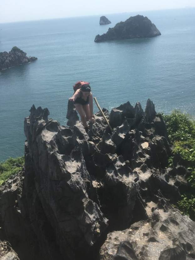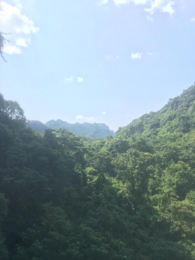 Päätimme matkamme Cat Ba’n luonnonpuiston viidakkoon. Reitillä olisi mahdollisuus nousta vuoren huipulle, mutta kaiken kokemamme jälkeen jyrkkä nousu auringon paahteessa viidakon tarjoamasta ajoittaisesta suojasta huolimatta sai meidät valitsemaan lyhyemmän kierroksen. Tämän polun parasta antia on kulkea ihan oikeassa viidakossa, katsella valtavien perhosten liihottelua ja leikkiä Tarzania (tai oikeastaan laiskiaista) liaanissa roikkuen.