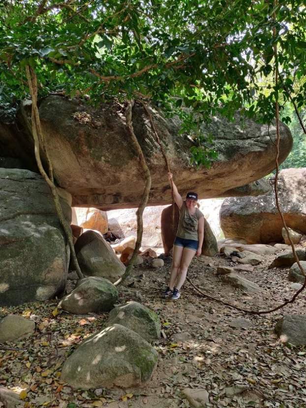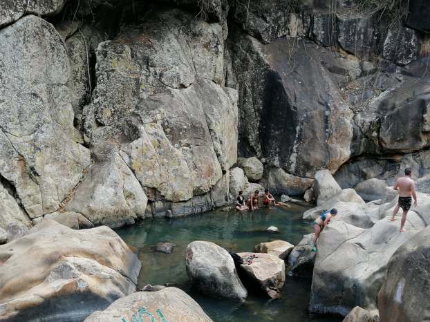 Toiselle ja kolmannelle lammelle päästäkseen täytyykin jo taiteilla. Reitille ei enää ole varsinaista polkua, vaan kiipeäminen käy suurten kivien kautta. Kulkeminen onnistuu kyllä kiviin upotettujen kädensijojen ansiosta, mutta reitillä saa ihan tosissaan kiivetä, ja kuumassa säässä mukana kannattaa olla reilusti vettä.