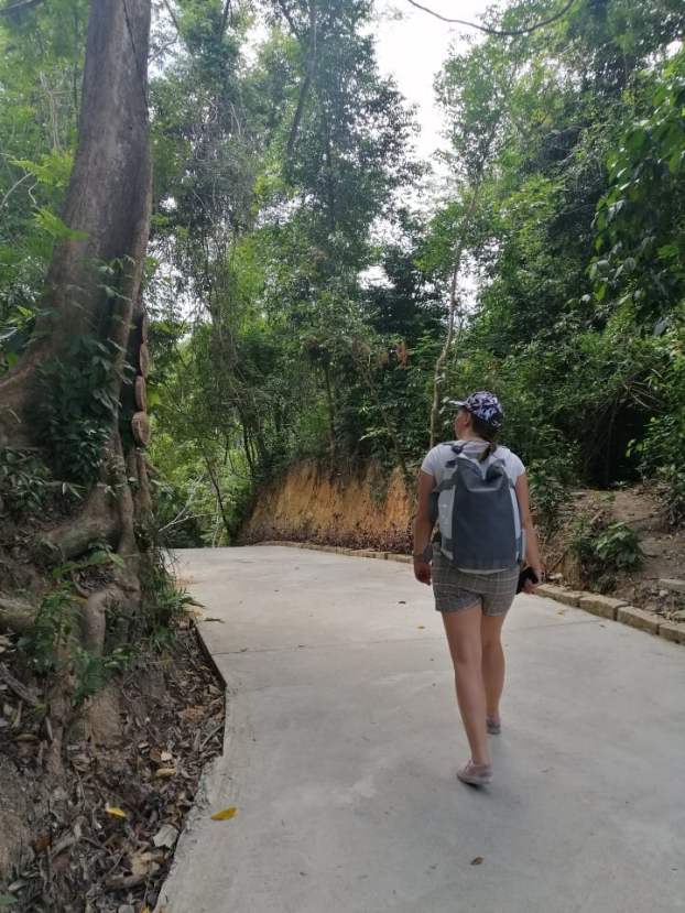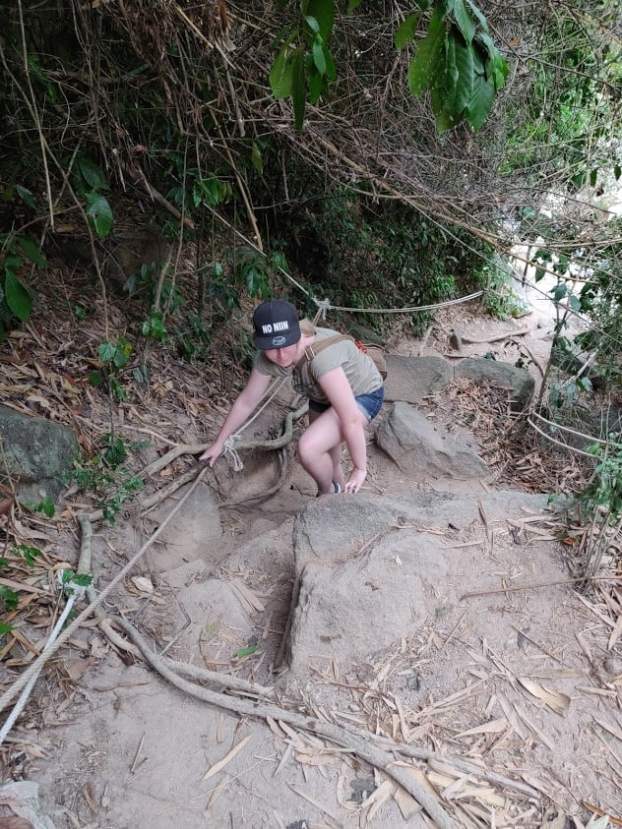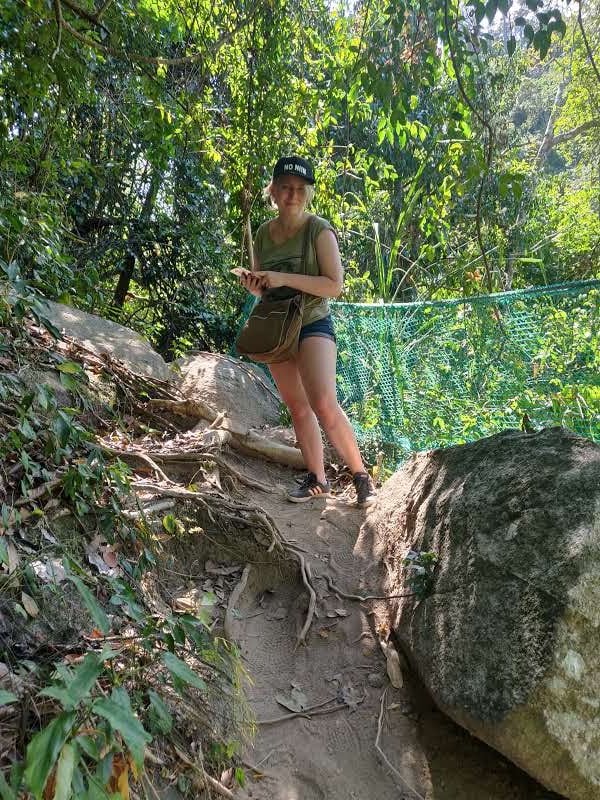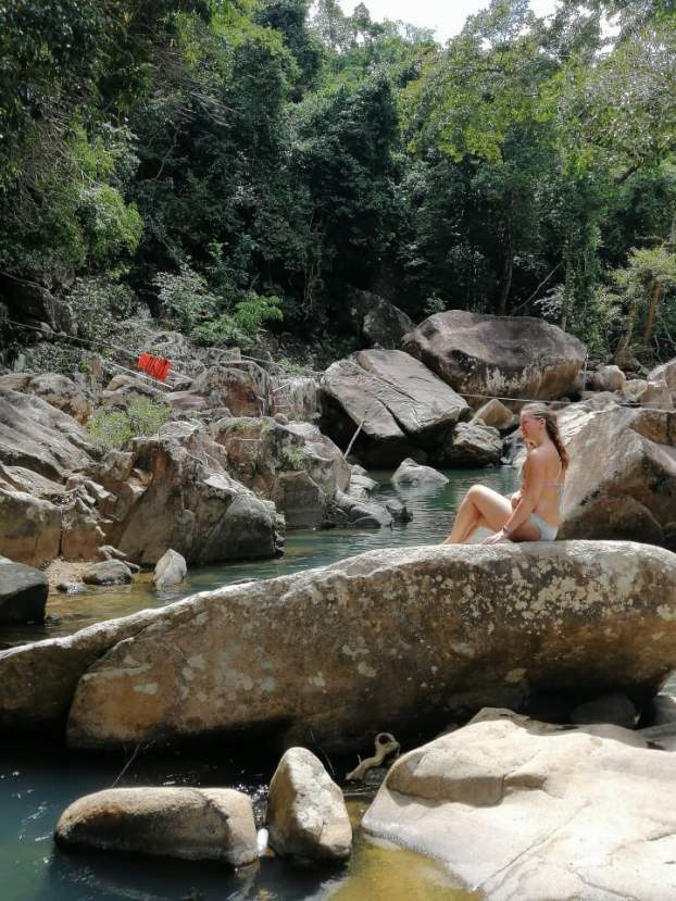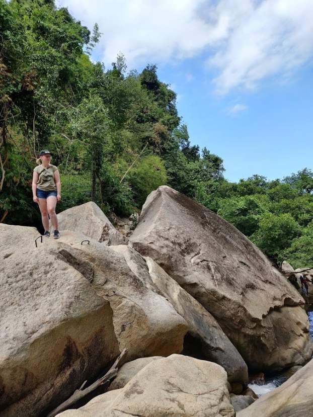 Yhden päivän käytimme Ba Ho’n putouksilla. Paikka on oikeastaan eräänlainen resort, josta lähtee reittejä vuorenrinnettä alas valuville putouksille ja lammille, joissa voi uida. Sisäänpääsy maksoi 100.000 dongia, eli noin neljä euroa, ja tällä hinnalla pääsi paitsi reitille, sai myös käyttöön resortin uima-altaat ja vesiurheiluvälineet. Alkumatka oli kuin kävelyä puistossa ja ensimmäiselle lammelle on helppoa päästä vaikka pientenkin lasten kanssa. Matkan varrelle on istutettu suloisia ja kekseliäitä paikkoja ottaa hauskoja kuvia tai asettua nauttimaan maisemista.