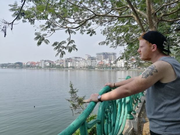 Aivan lähellä on Hanoin suurin järvi, jonka rannassa kävimme kävelemässä Brandonin kanssa tänä aamuna. Aurinko paistoi ja lämmintä oli noin 25 astetta. Ostin jäätelön ja katselimme onkijoita. Ohitsemme kulkevien länsimaalaisten määrä tuntui häkellyttävältä verrattuna Hai Phongiin, jossa toisinaan en nähnyt oman työporukkani ulkopuolella länsimaalaisia viikkoihin.