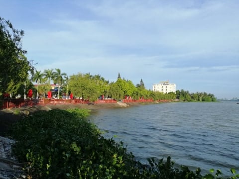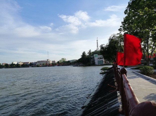 Pidän Kien Thuysta. Mielestäni tällä paikalla olisi turistikaupunkinakin paljon enemmän potentiaalia kuin suurella mutta betonisella ja likaisella Hai Phongilla. Kaupungin halki kulkee iloinen joki, jossa lapset käyvät uimassa pelastusliivit päällä. Joen varren puihin on laitettu valoja ja rantaa koristavat muistomerkit. Kauppojakin on ja kahviloissa löytyy niin perinteisiä vietnamilaisia kadunvarsimalleja pikkuisine muovipenkkeineen ja arveluttavine muovikuppeineen kuin varsin länsimaalaistyylisiä sisäkahviloitakin, joista saa paitsi järjettömän hyvän bac xiun (todella makea kylmä maitokahvi) myös kuuluisaa maitoteetä (bubble tea), pirtelöitä ja jogurttijuomia. Ranta on lyhyen matkan päässä eikä Hanoihin ja muihin kohteisiin ole myöskään pitkä matka. Pikkuisen puitteita kasaan ja tästä saisi ihastuttavan lomakohteen.