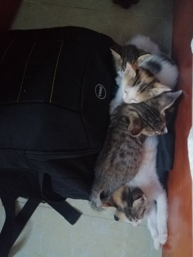 Juuri tällaisena hetkenä hotellin, jossa olen edelleen pakolaisena sopivaa asuntoa etsiessäni, henkilökunta ilmoitti, että minun on kissoineni poistuttava siivoojan tieltä. Olen itse asiassa todella ylpeä siitä, miten siististi kuusi kissaa voikaan olla – viisiviikkoiset pennut ovat oppineet hienosti käyttämään hiekkalaatikkoa (jossa käydään myös näyttäviä painiotteluita) ja niiden päivät kuluvat leikkiessä ja kiipeilyharjoituksissa. Tänään ensimmäinen kepuli onnistui kiipeämään matkalaukkuani pitkin ikkunalaudalle.