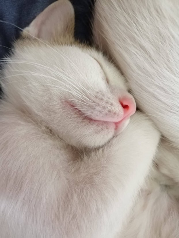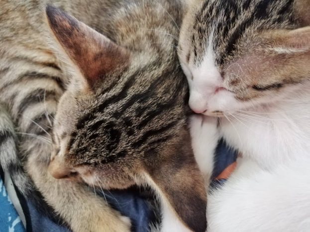Sisu on pahalla päällä, se on dieetillä. Se söi kissaemolle ja pennuille tarkoitettua ruokaa, ja ensin oikein kohtuullisesti, mutta sitten homma lähti lapasesta. Maha alkoi kasvaa. Vaihdoin Sisulle aikuisen sisäkissan ruuan ja pennut saavat omaa penturuokaansa. Nyt Sisu kulkee aina perässäni liikkuessani asunnossa ja huutaa kuin viimeinen hengenveto olisi lähellä. Jos ruokapussi jää hetkeksi pöydälle, Sisu syö pussin kylkeen reiän päästäkseen sisältöön kiinni. Syötyään omat sapuskansa se siirtyy päättäväisesti pentujen kupille, mistä nostan sen pois kolmesataa kahdeksankymmentä kertaa ennen kuin pennut ovat syöneet kyllikseen.